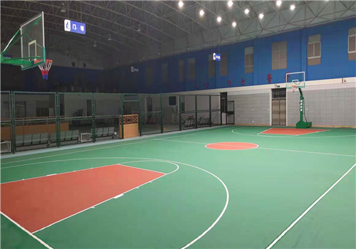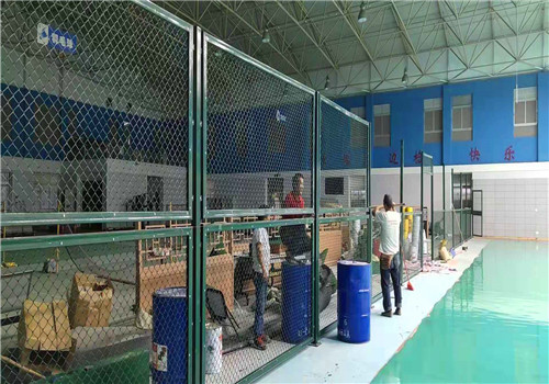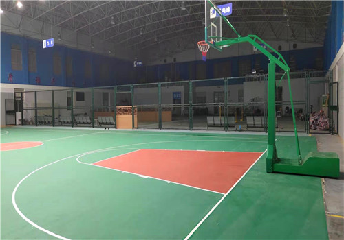 汕頭市龍湖區潮汕機場邊檢站新國標硅PU籃球場、防撞包、隔斷網、移動式籃球架已順德完工